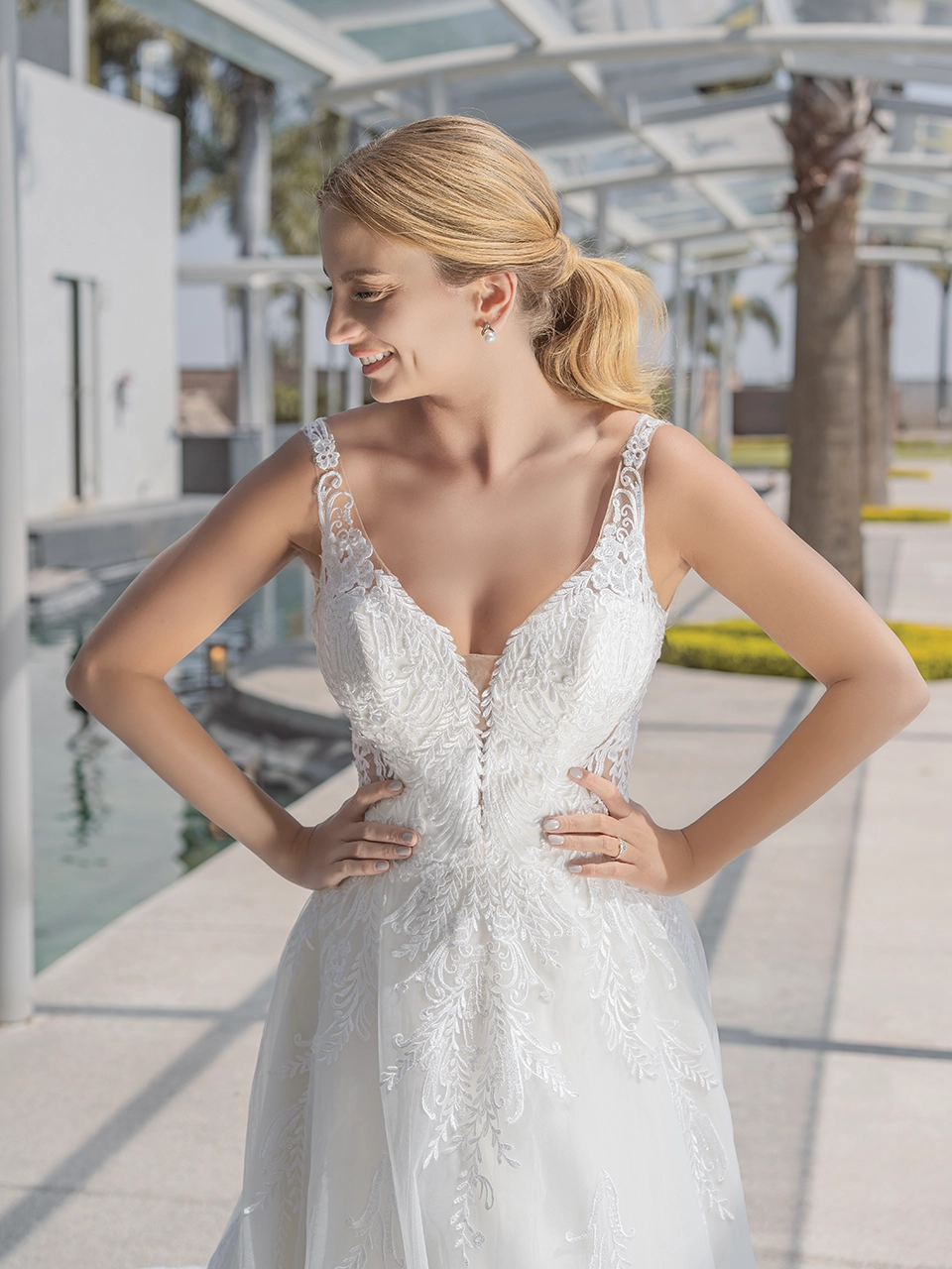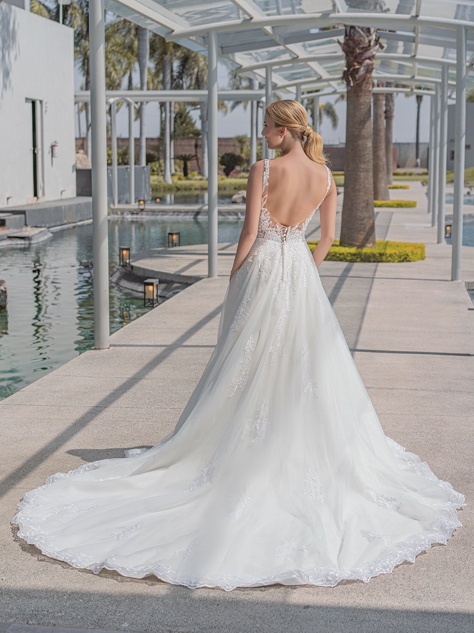 SKU EG30Vestido de novia corte princesa con escote y espalda V ilusión.
